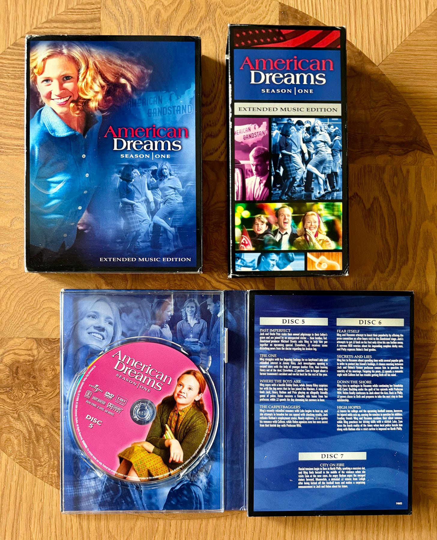 SR: I have seasons two and three of Parenthood, but not season one for some reason. I have the first TV show that I was on, right after I went on the Mary-Kate & Ashley cruise, a show called American Dreams. It was about the show American Bandstand, which was kind of like TRL in the 1960s. They’d have musical guests perform live and teenagers would dance to it and they shot in Philadelphia, which is so random. So American Dreams was basically a fictionalized version of that, and I played Britney Snow's precocious and bratty sister, and we would have stars from the early 2000s playing stars from the 1960s. We had Kelly Clarkson playing Brenda Lee, JoJo playing Linda Ronstadt, Usher playing Marvin Gaye… But unfortunately no one’s ever heard of this show because the music was so expensive and it’s not available on streaming. The only version of American Dreams you can still access are these DVDs of season one.